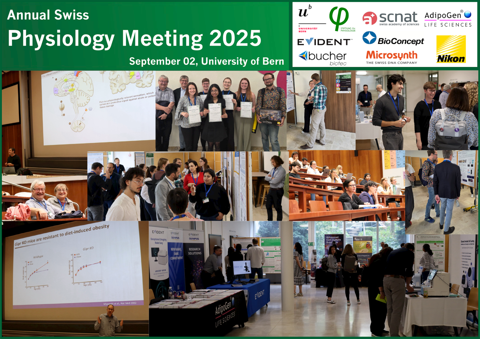 Swiss Physiology Meetings websites and pictures 2012, 2013, 2014, 2015, 2016, 2017, 2018, 2019, 2020, 2021, 2022, 2024.